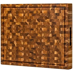 Extra large wooden butcher blocks and teak-wood boards are essential for handling heavy cuts of meat, turkey, and BBQ ribs. Their weight provides the stability required for heavy chopping.